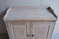 A fine period Gustavian buffet with cut corners and reeded doors. Scraped to original paint that has been slightly toughed up on the outside. Original hardware.