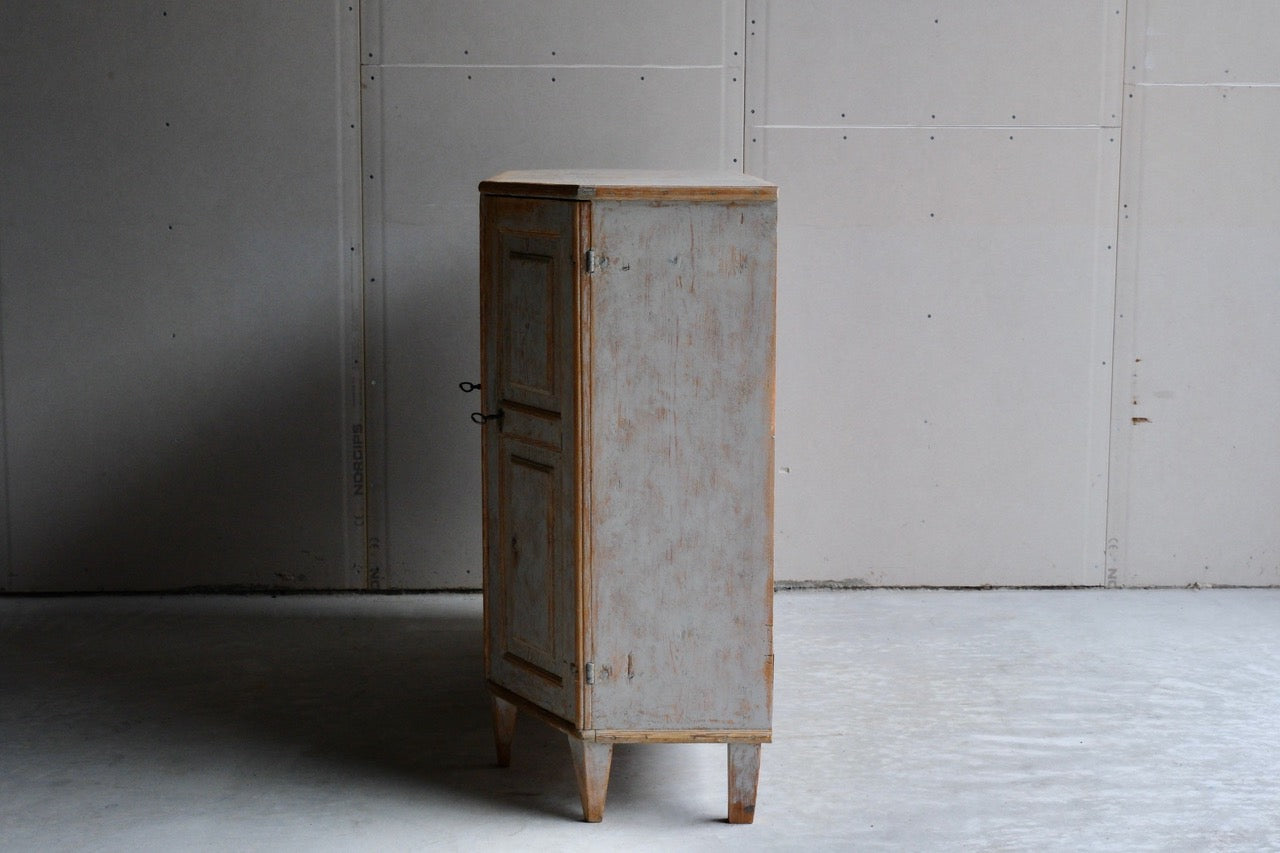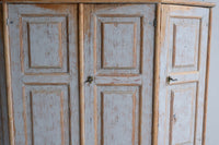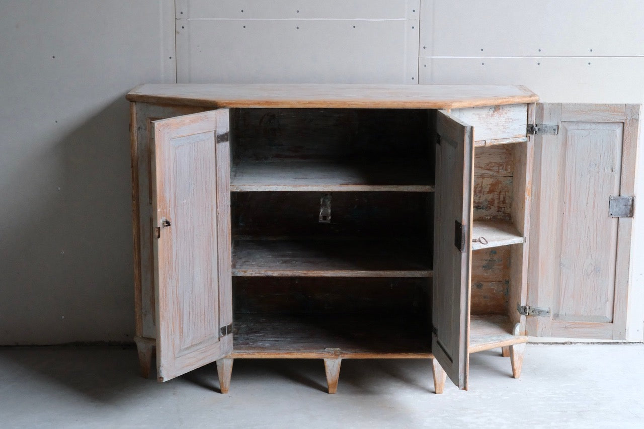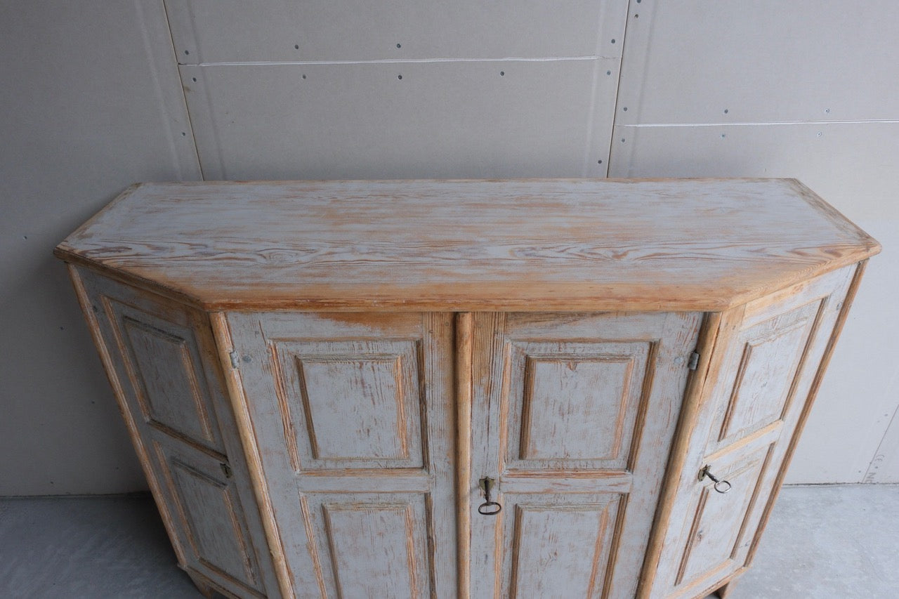 A late 18th century 4 door buffet, repainted in soft grey and scraped to original inside paint.