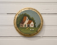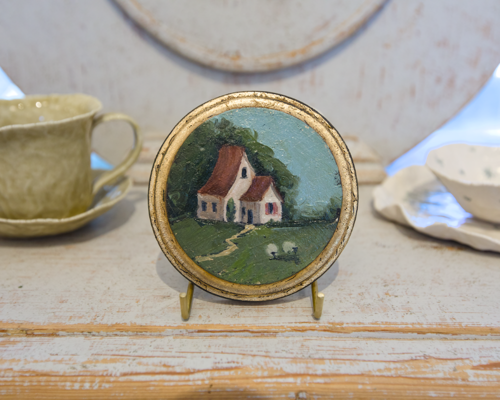 Hand painted in oil on a antiqued gold leafed wooden panel