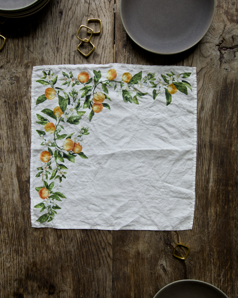 Bring the happiness of the sunlit orange to your table with this napkin. Perfect for everyday meals or special occasions. Timeless and joyful.