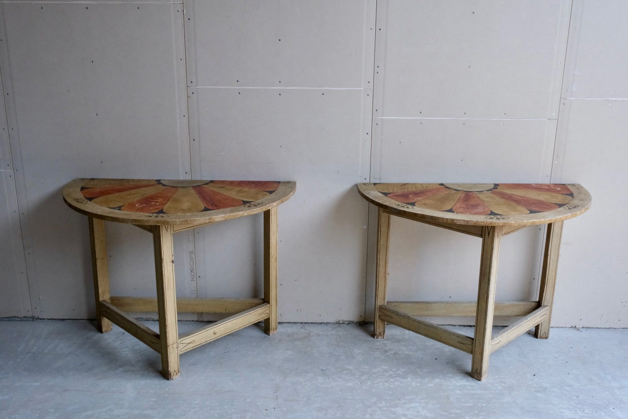 Pair of 19th century demi lune tables in original paint. Manufactured c1840
