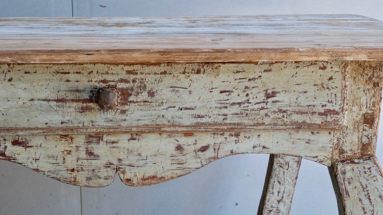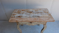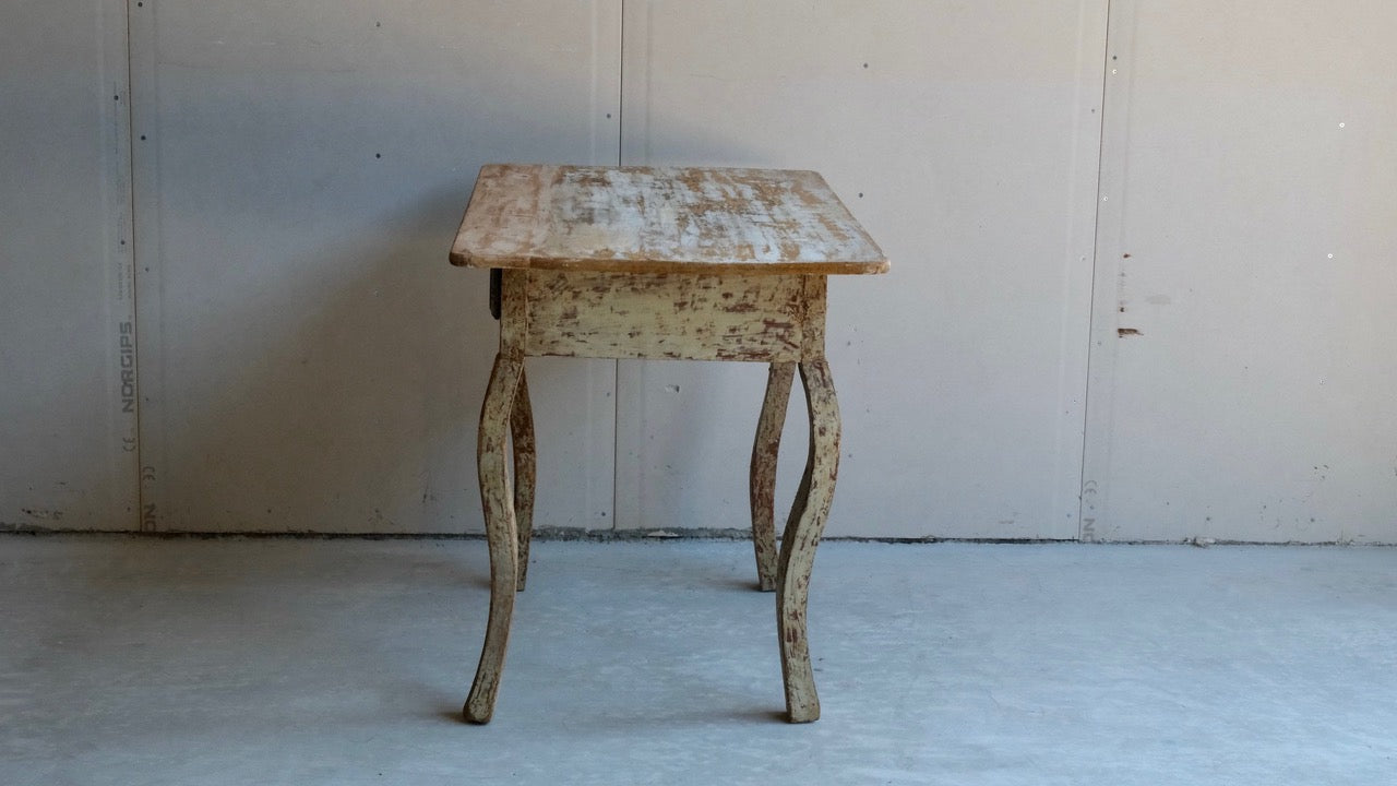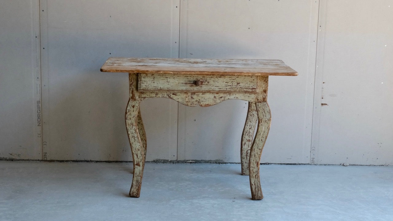 A provincial rococo table from the North of Sweden with one drawer, scraped to original paint.