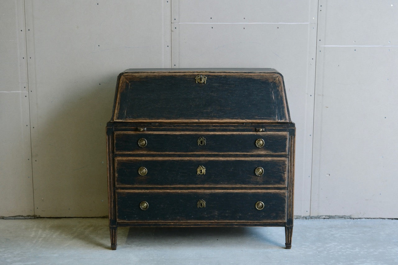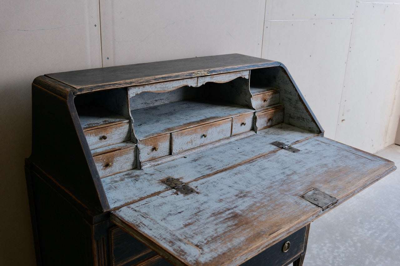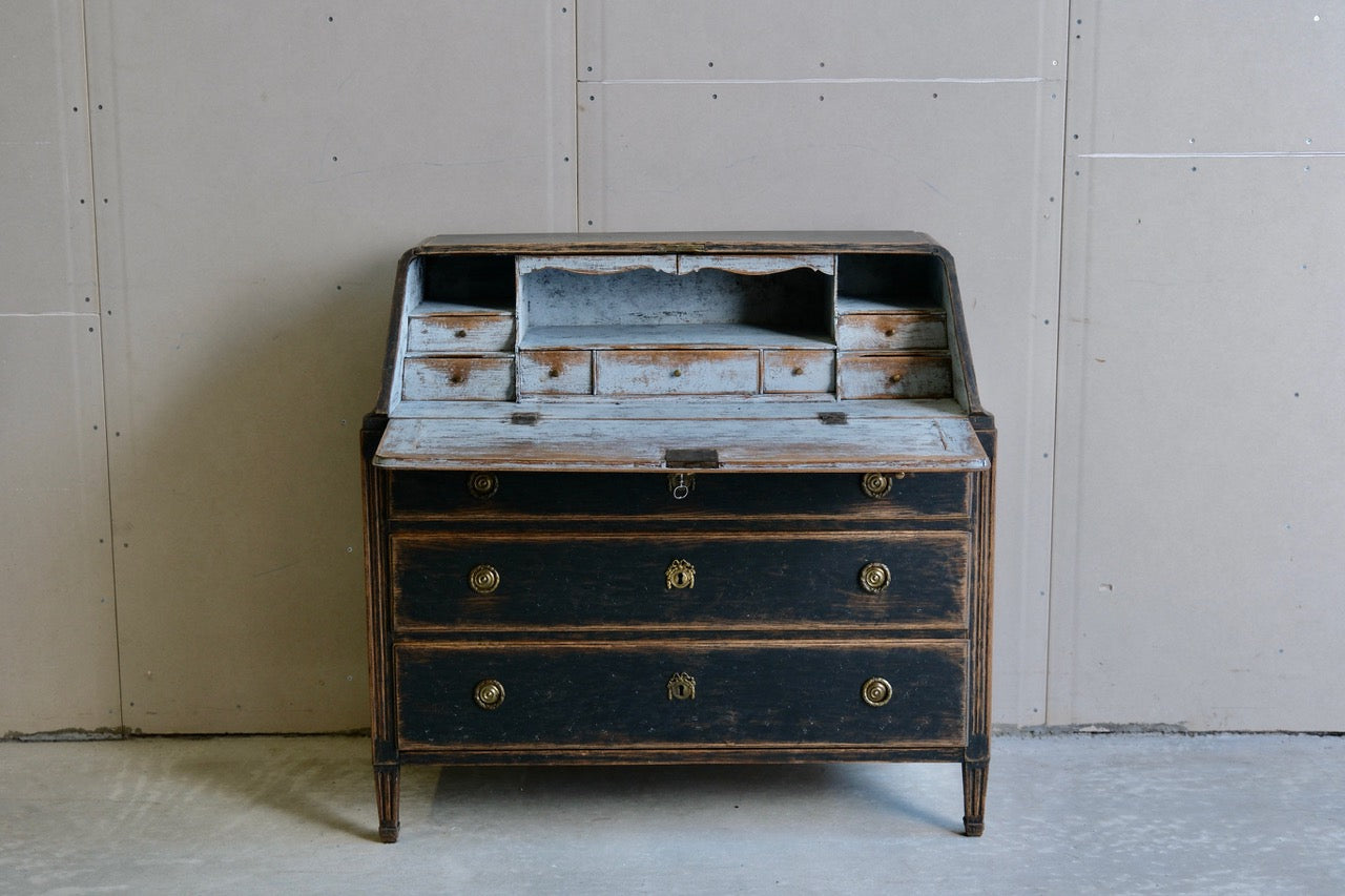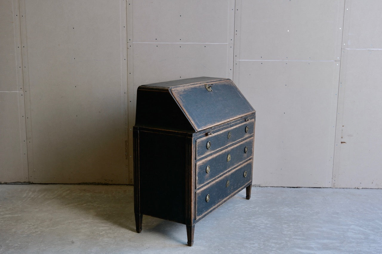A period Gustavian secretaire repainted in black and with bluish interior. Original hardware. manufactured c1780
